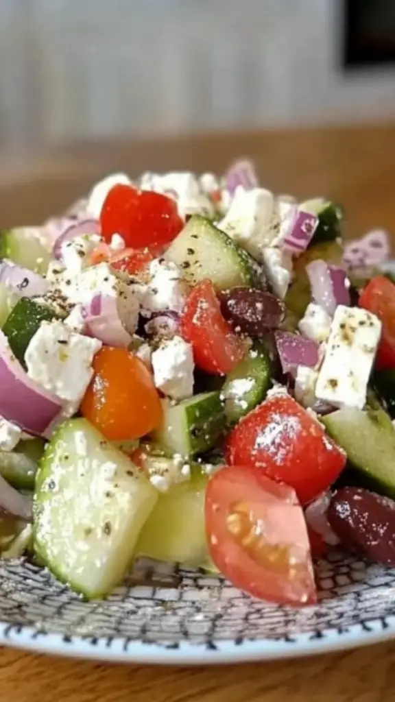 #FreshGreekSalad 🥗 #CrispAndDelicious 🍅 #MediterraneanVibes 🌿 #EasyAndHealthy 💚 #FetaLove ❤️ #FlavorPacked 🍽️ #HealthyEating 🏡 #LightAndTasty ☀️ #SimpleAndRefreshing 💥 #HomemadeHappiness 😍