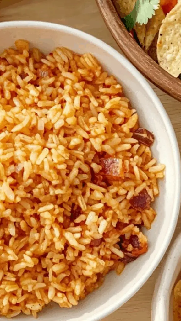 Mexican rice is a classic side dish that’s bursting with flavor and color, often a staple on dinner tables across the world. It perfectly complements many dishes, from tacos and enchiladas to grilled meats and roasted vegetables. Traditionally, Mexican rice recipes sometimes use pork or bacon to add smoky depth, but this version swaps those for chicken or beef, making it more accessible and suitable for those who prefer other proteins. This adaptation still retains the rich, savory, and slightly tangy taste that makes Mexican rice so popular. Whether you’re a beginner in the kitchen or a seasoned cook looking for a quick and delicious side dish, this recipe delivers a satisfying, aromatic rice that pairs wonderfully with many meals. Plus, it’s made in one pot, so cleanup is a breeze!