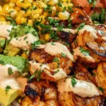 Looking for a colorful, nutritious, and incredibly flavorful meal that comes together in under 30 minutes? This grilled shrimp bowl with avocado-corn salsa and creamy garlic sauce might just become your new favorite. Perfect for a light dinner or satisfying lunch, it offers a harmonious balance of smoky grilled shrimp, fresh vegetables, and a tangy, velvety sauce.