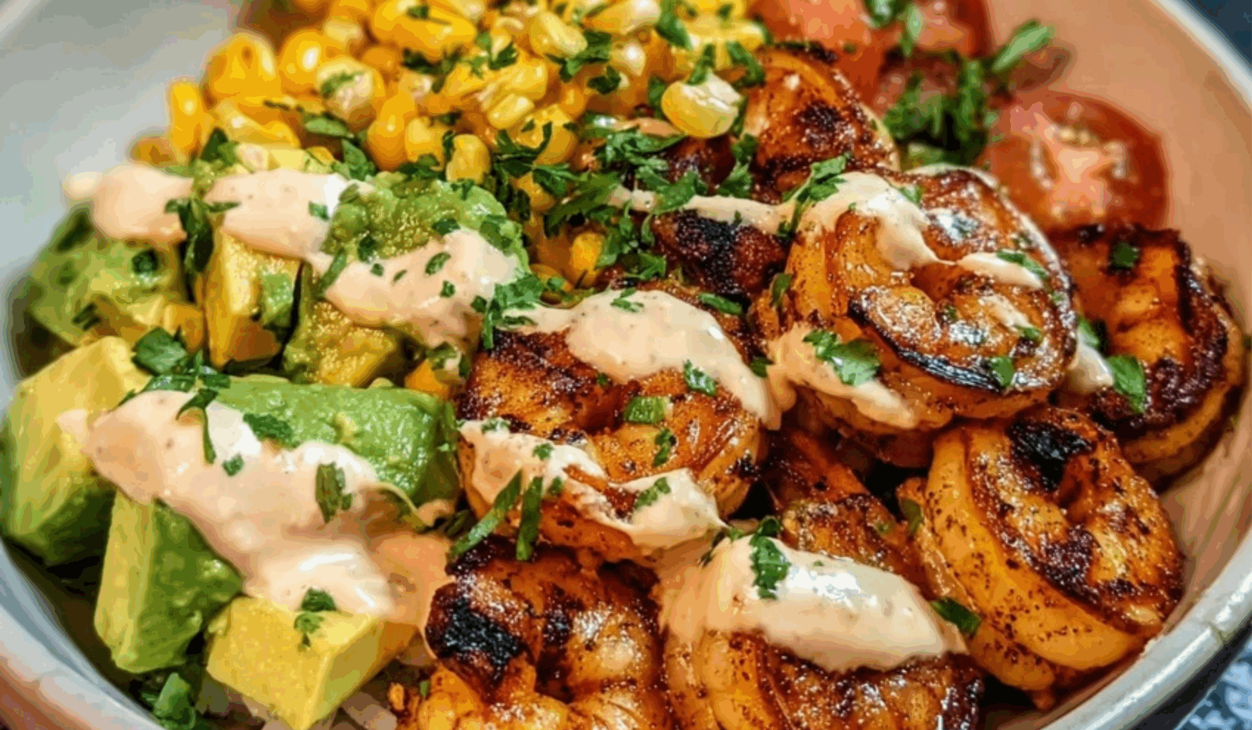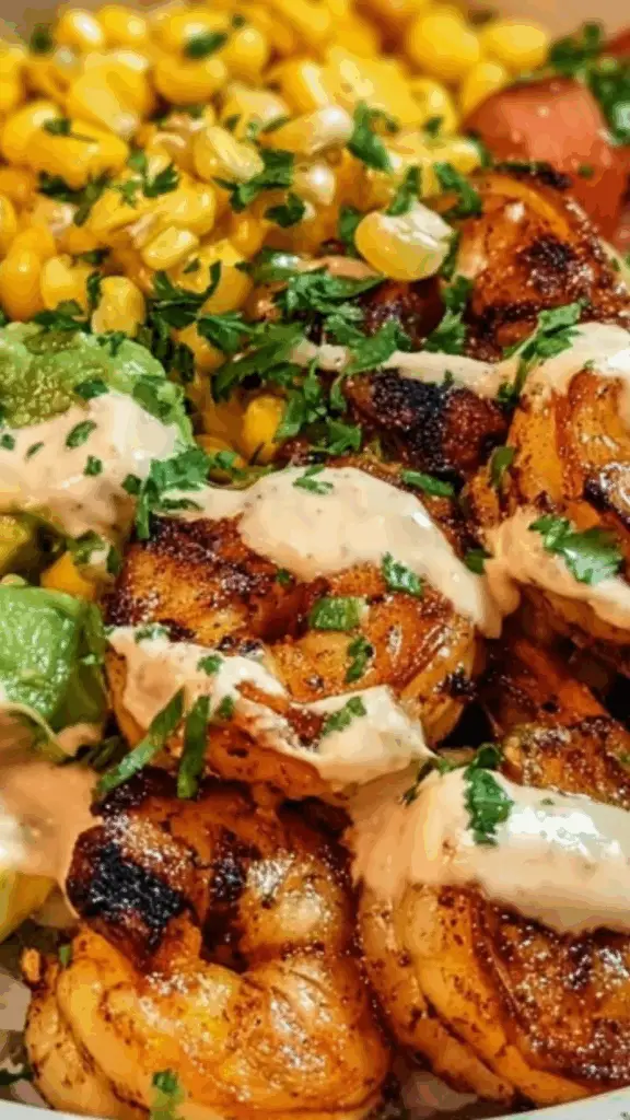 Grilled Shrimp Bowl with Avocado-Corn Salsa and Creamy Garlic Sauce: A Fresh, Flavorful One-Bowl Meal