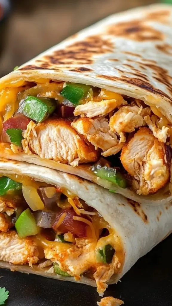 To ensure a well-balanced and flavorful burrito, this recipe includes seasoned chicken, refried beans, vegetables, rice, and cheese. Below is the full list of ingredients, along with possible substitutions for flexibility.